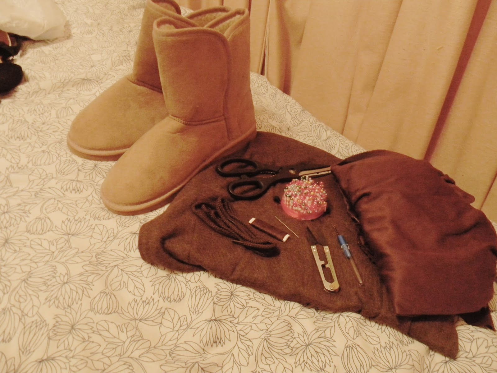 They don’t have to be exactly the same colour – just go with whatever suits you. The actual material used for most of the boots was tweed, I believe, but it doesn’t have to be. I’ve heard of other Rey cosplayers using army blankets for their Rey boots. It’s totally up to you what you use, you don’t have to follow this tutorial step by step. It’s just a little guide.