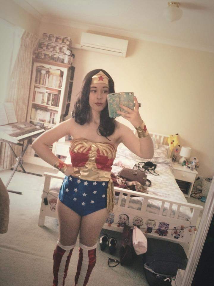 Costume inspired by the 1970s Wonder Woman, starring Lynda Carter. Commercial pattern.